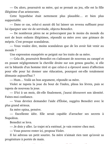 Le tome 3 est centré sur l’aîné de la famille des Bridgerton qui n’est pas encore mariée à, savoir Benedict, et le tome 4 lui est centrée sur le jeune frère Colin. Je vous rappelle que la fratrie est grande chez les Bridgerton, qui reste pas mal d’enfants à marier, ce qui laisse supposer à plein d’histoires encore à venir, plein d’histoires sentimentales, etc. Donc, on n’en a pas encore fini même près cette tomes 3 et 4.